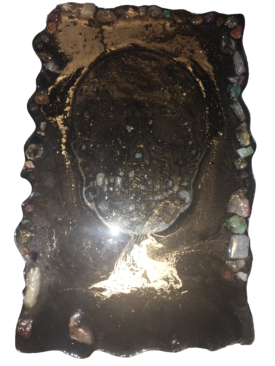 Black and Gold Skull Tray with Stones